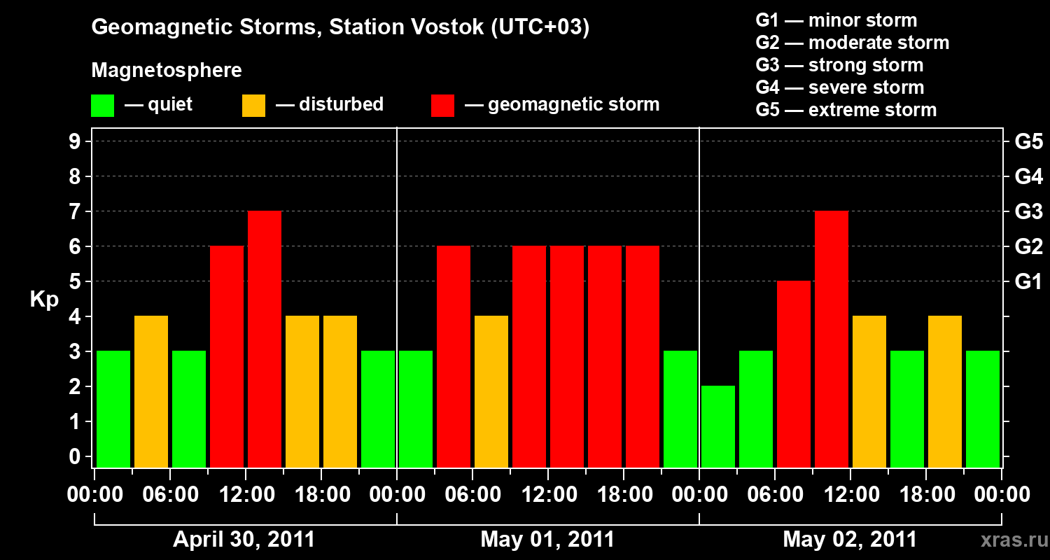 Geomagnetic storms in Station Vostok — May 02, 2011