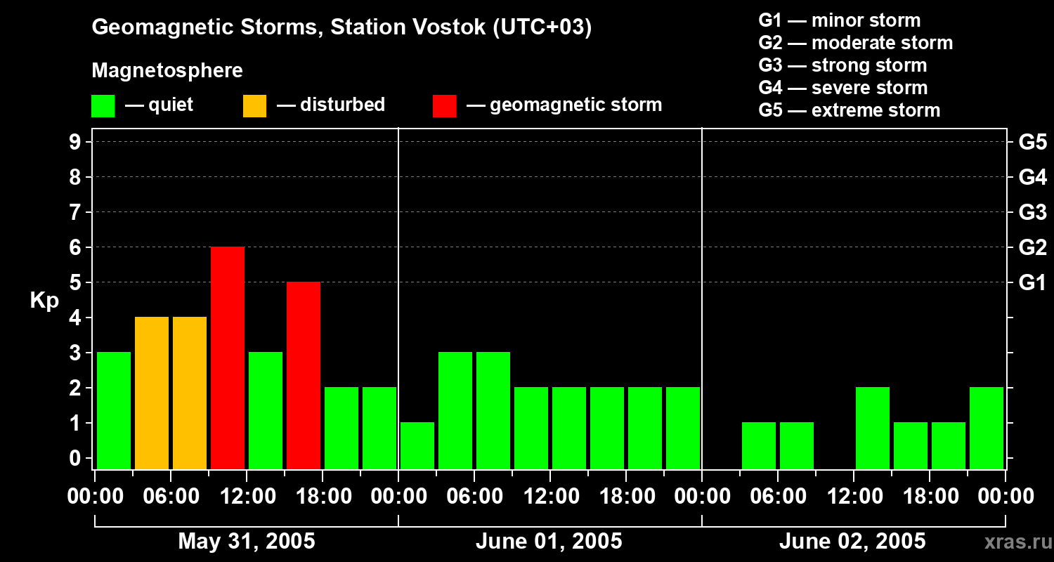 Geomagnetic storms in Station Vostok — Jun 02, 2005
