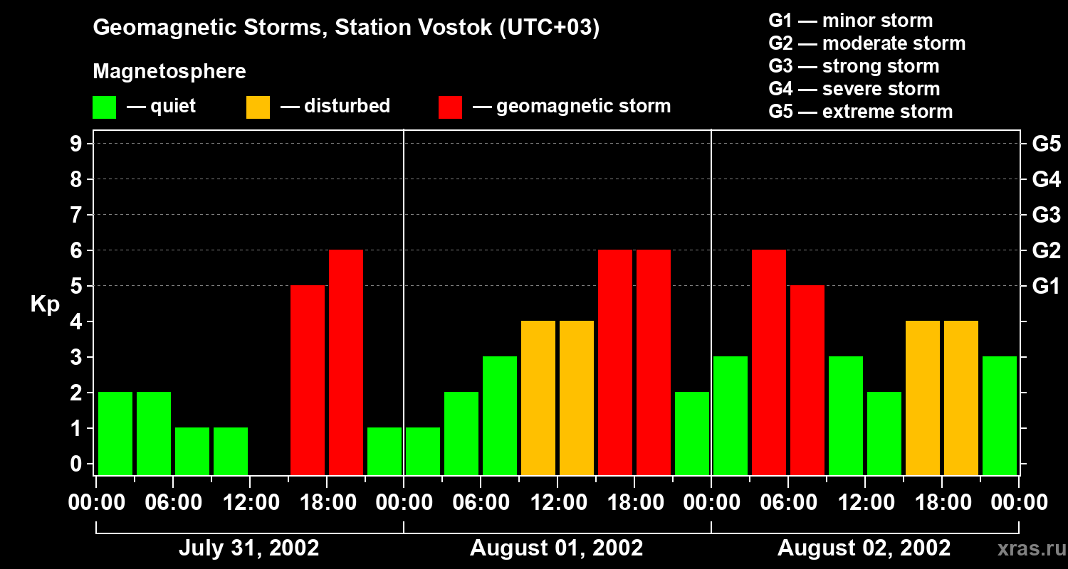Geomagnetic storms in Station Vostok — Aug 02, 2002