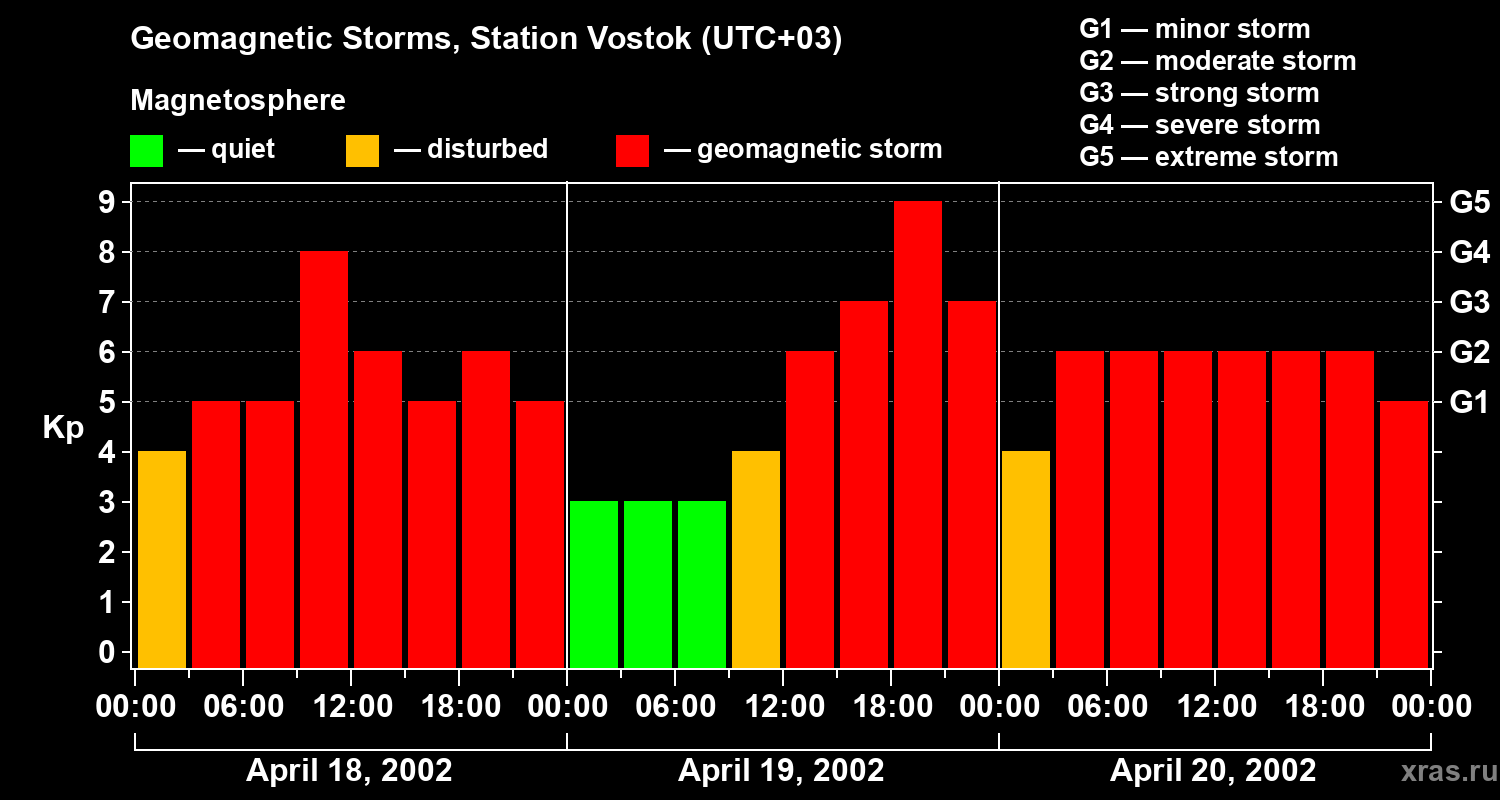 Geomagnetic storms in Station Vostok — Apr 20, 2002