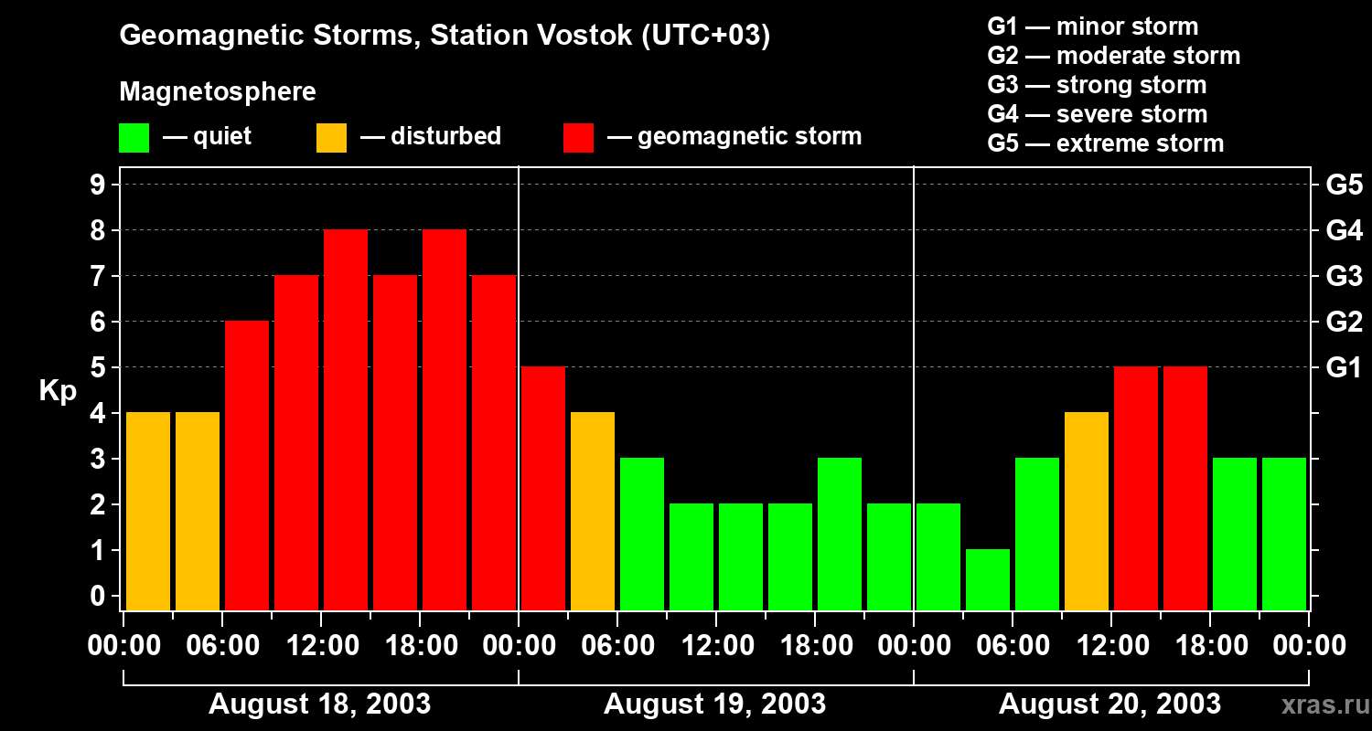 Geomagnetic storms in Station Vostok — Aug 20, 2003
