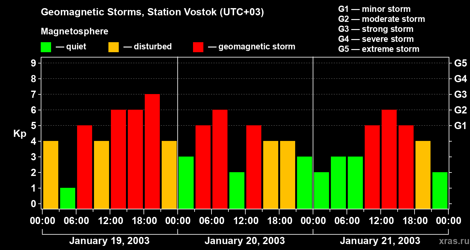 Geomagnetic storms in Station Vostok — Jan 21, 2003