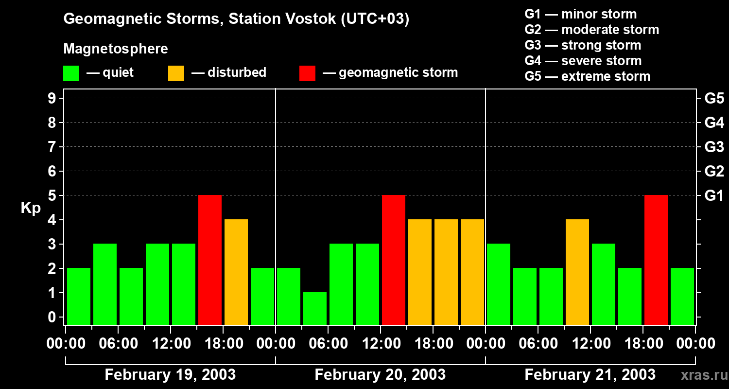 Geomagnetic storms in Station Vostok — Feb 21, 2003