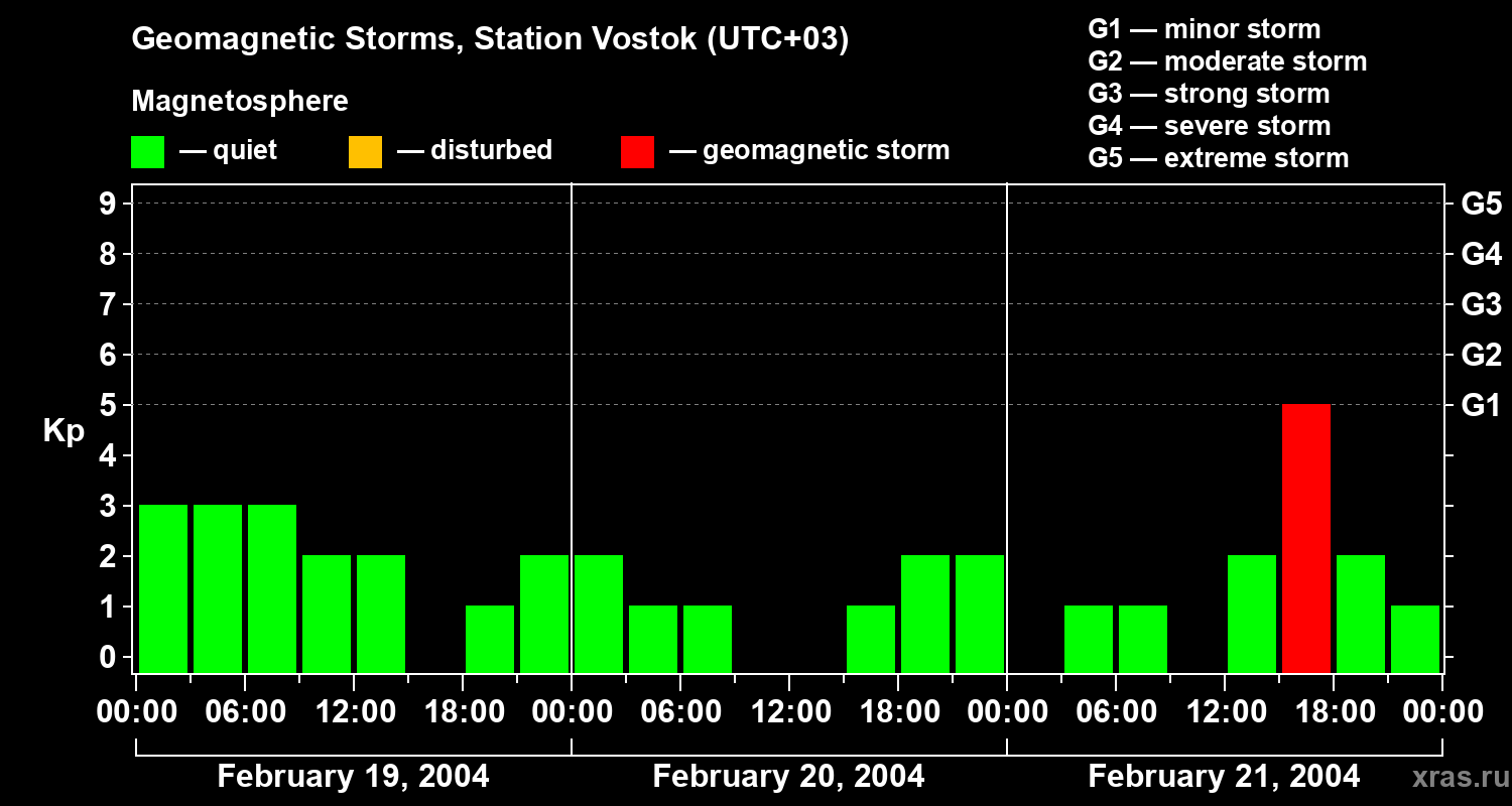 Geomagnetic storms in Station Vostok — Feb 21, 2004