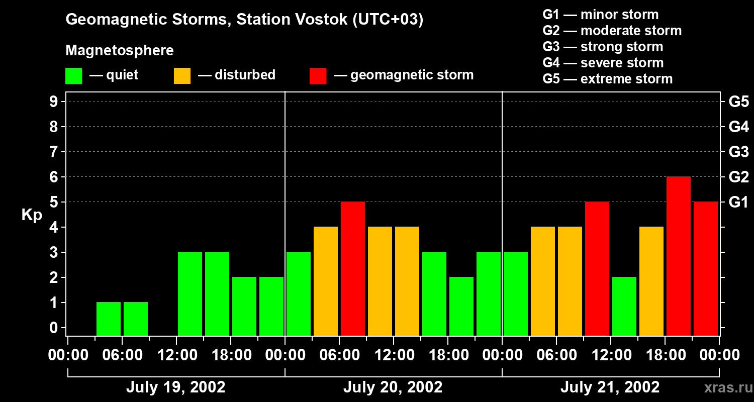 Geomagnetic storms in Station Vostok — Jul 21, 2002