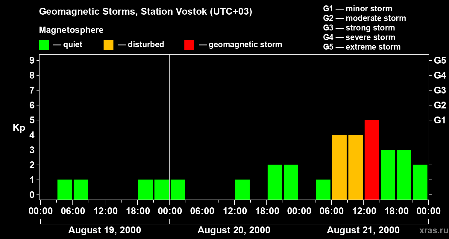 Geomagnetic storms in Station Vostok — Aug 21, 2000