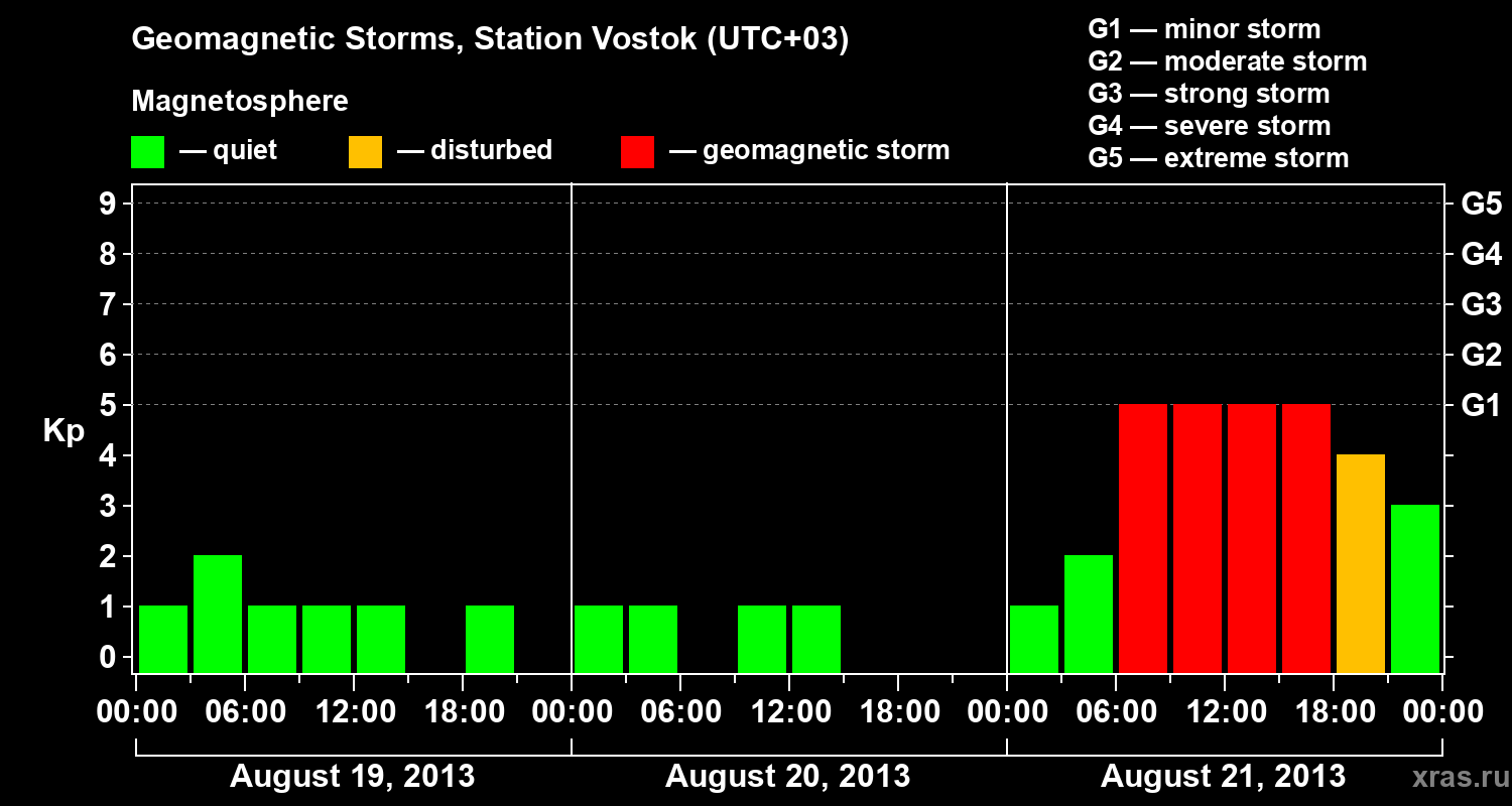 Geomagnetic storms in Station Vostok — Aug 21, 2013