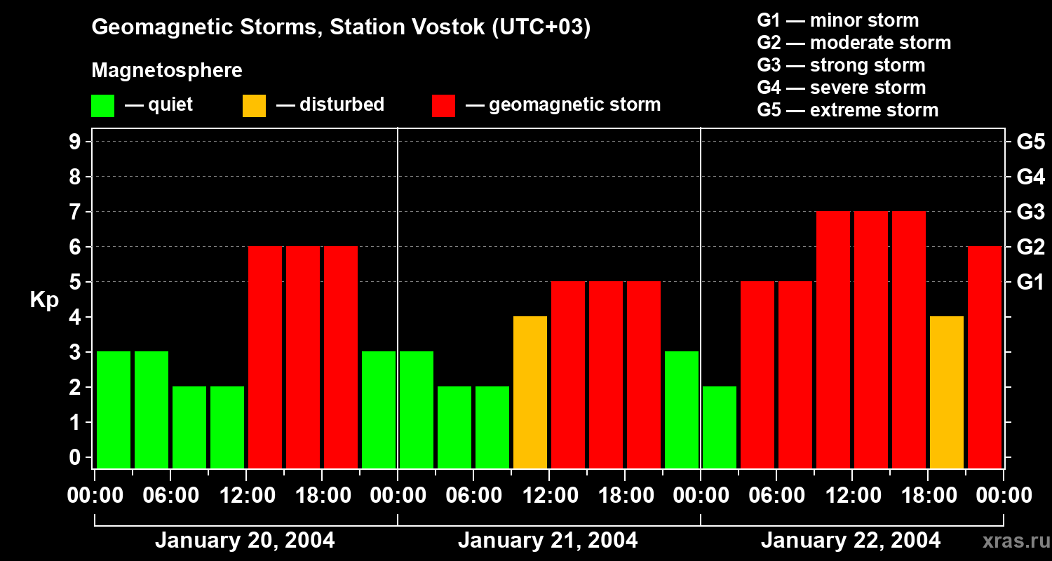 Geomagnetic storms in Station Vostok — Jan 22, 2004