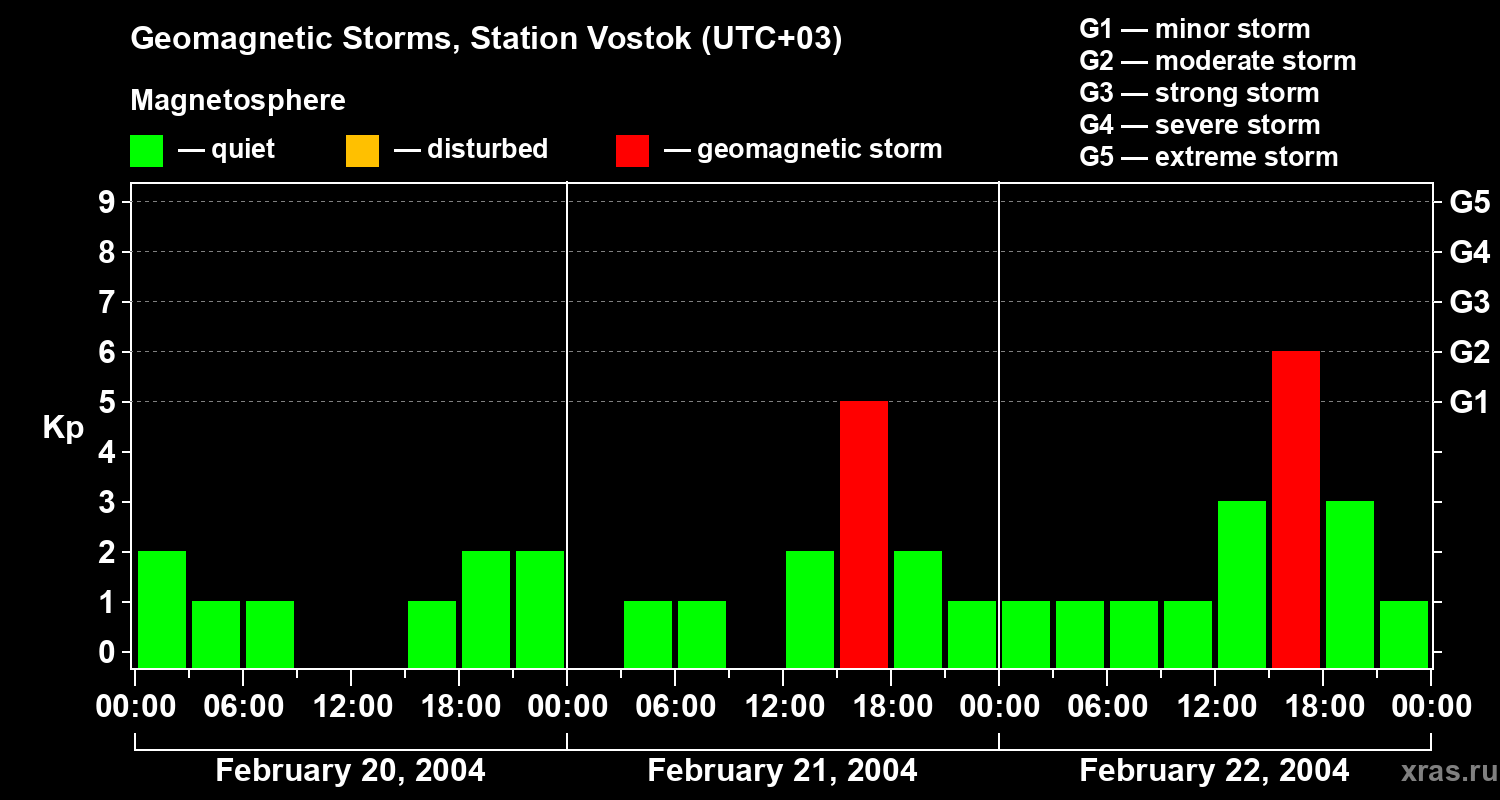 Geomagnetic storms in Station Vostok — Feb 22, 2004