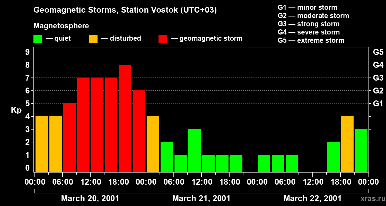 Geomagnetic storms in Station Vostok — Mar 22, 2001