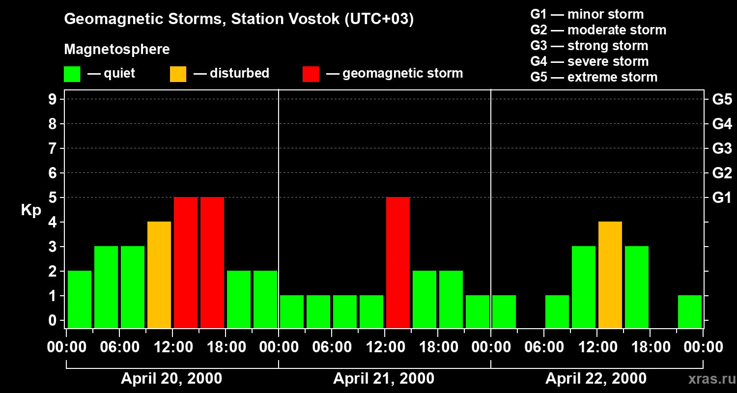 Geomagnetic storms in Station Vostok — Apr 22, 2000