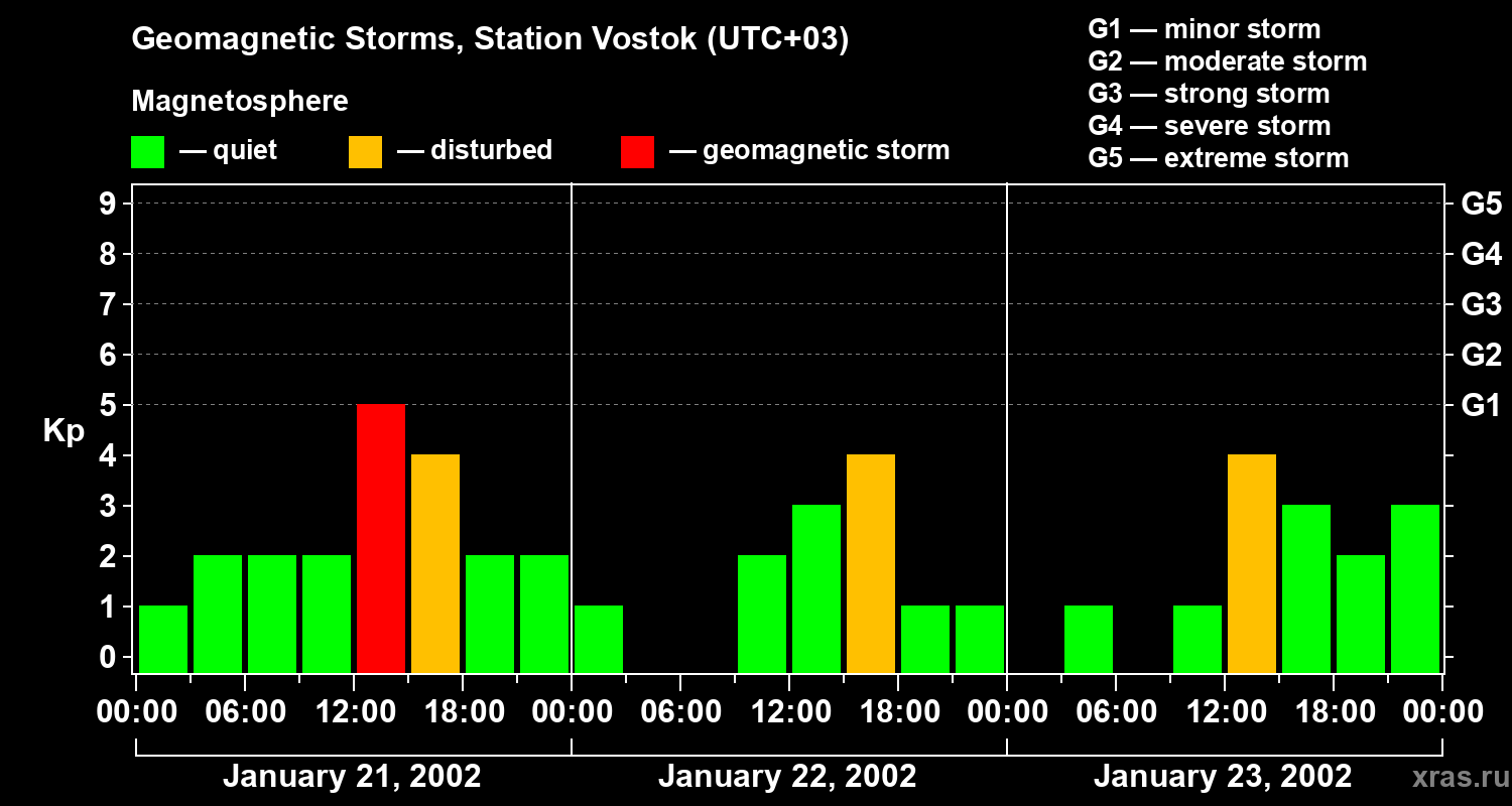 Geomagnetic storms in Station Vostok — Jan 23, 2002