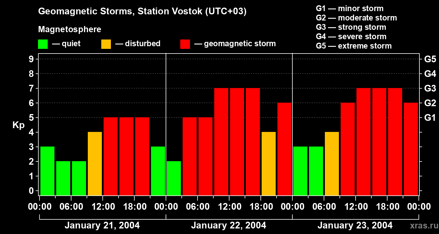 Geomagnetic storms in Station Vostok — Jan 23, 2004