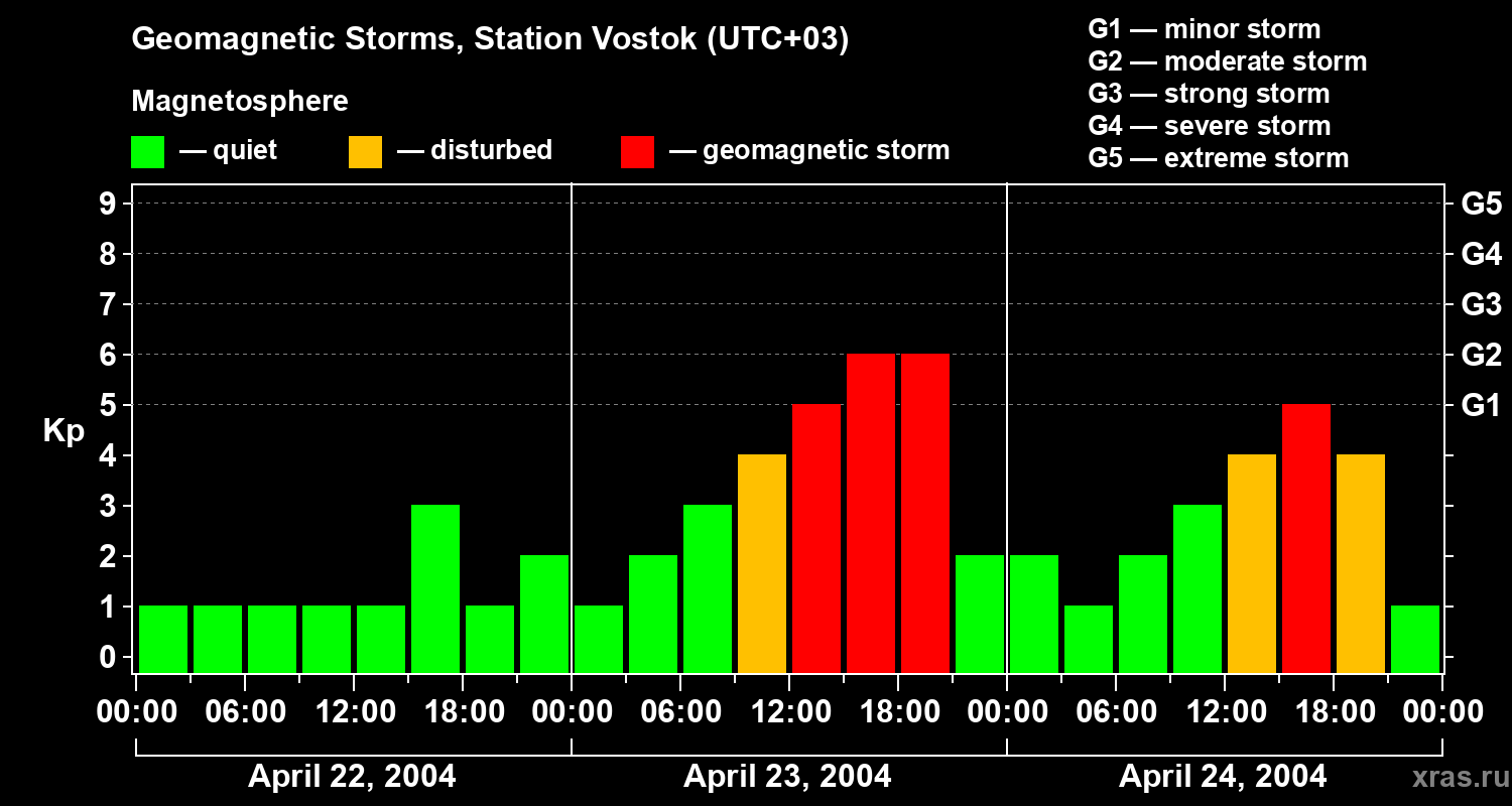 Geomagnetic storms in Station Vostok — Apr 24, 2004