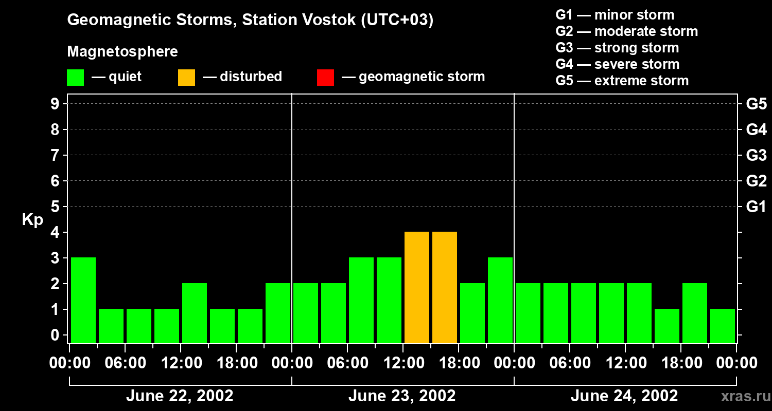 Geomagnetic storms in Station Vostok — Jun 24, 2002