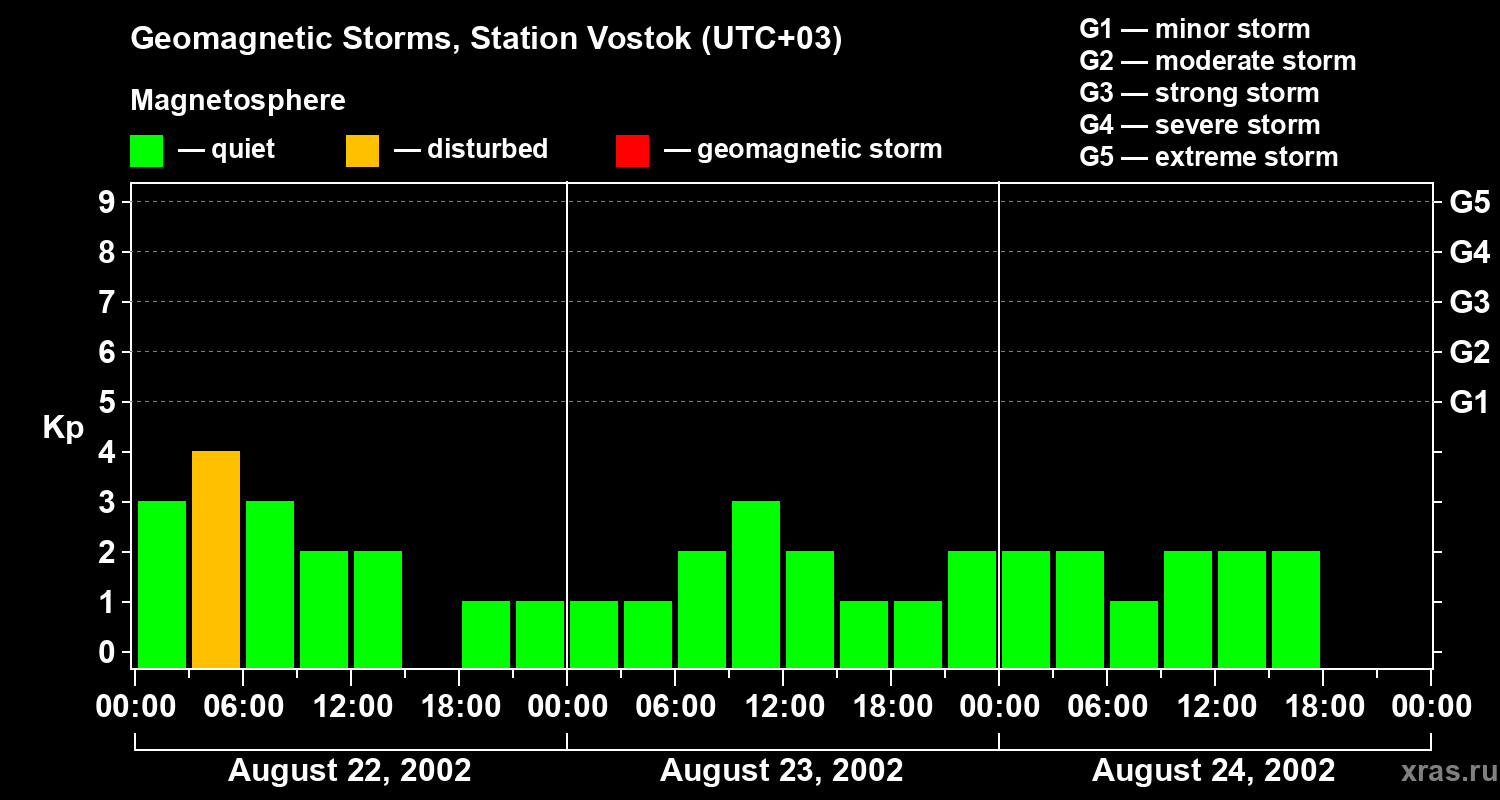 Geomagnetic storms in Station Vostok — Aug 24, 2002