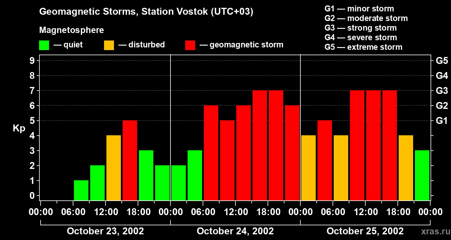 Geomagnetic storms in Station Vostok — Oct 25, 2002