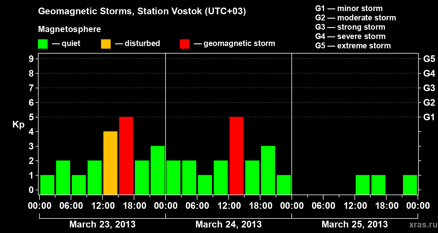Geomagnetic storms in Station Vostok — Mar 25, 2013