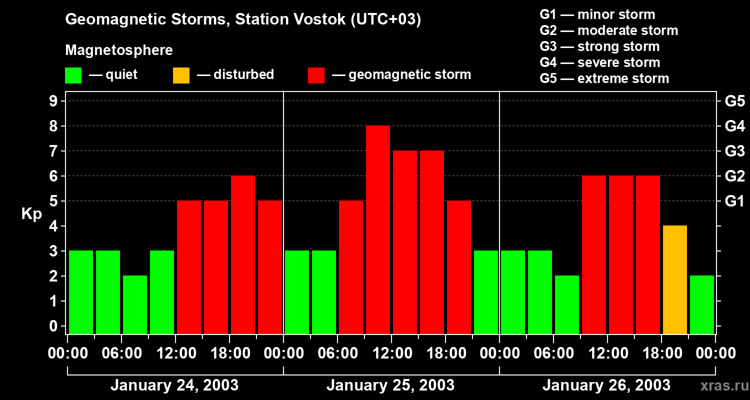 Geomagnetic storms in Station Vostok — Jan 26, 2003