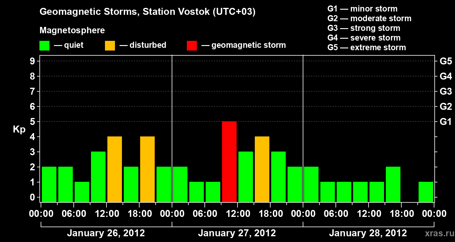 Geomagnetic storms in Station Vostok — Jan 28, 2012