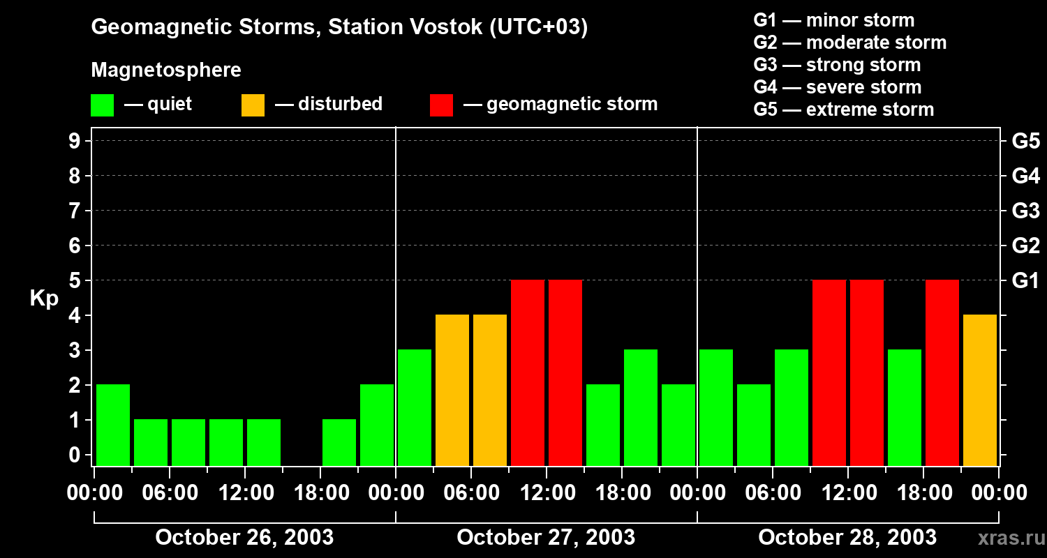 Geomagnetic storms in Station Vostok — Oct 28, 2003