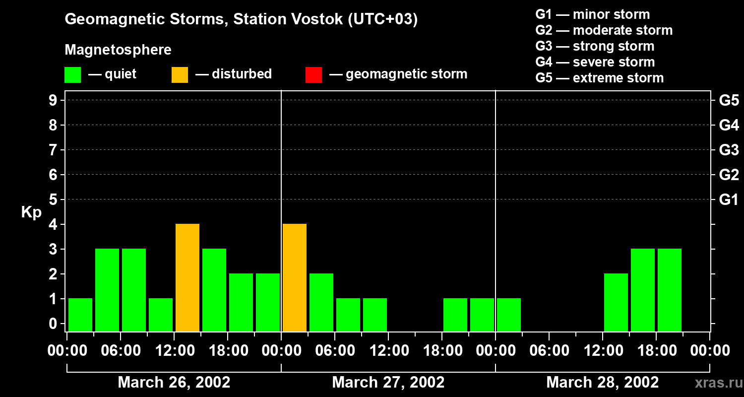Geomagnetic storms in Station Vostok — Mar 28, 2002