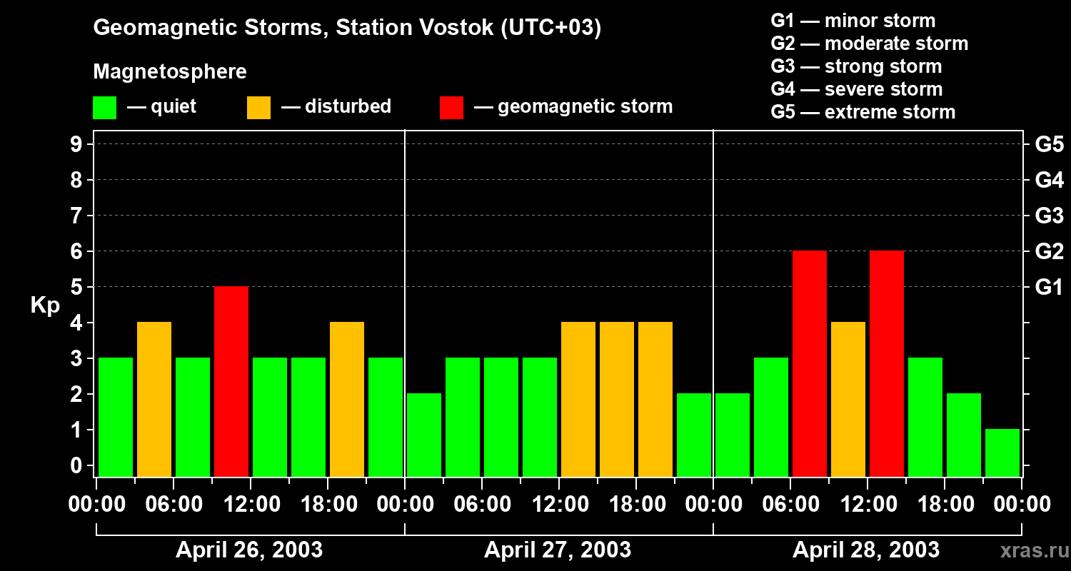 Geomagnetic storms in Station Vostok — Apr 28, 2003