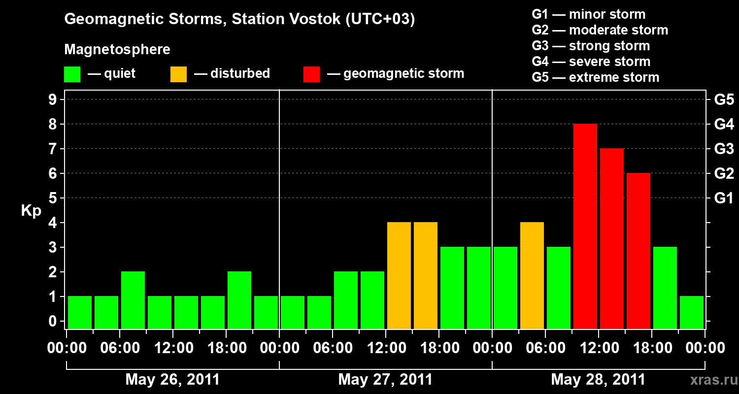 Geomagnetic storms in Station Vostok — May 28, 2011