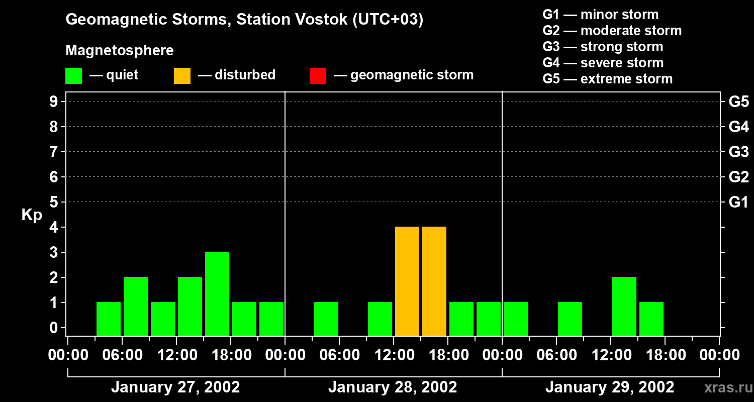 Geomagnetic storms in Station Vostok — Jan 29, 2002