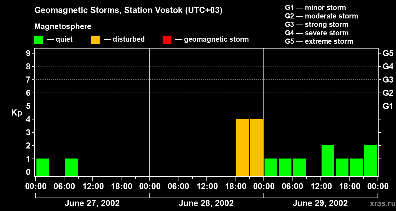 Geomagnetic storms in Station Vostok — Jun 29, 2002