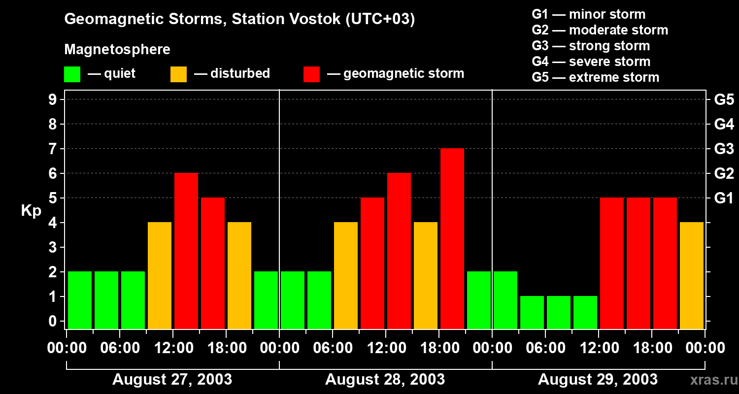 Geomagnetic storms in Station Vostok — Aug 29, 2003