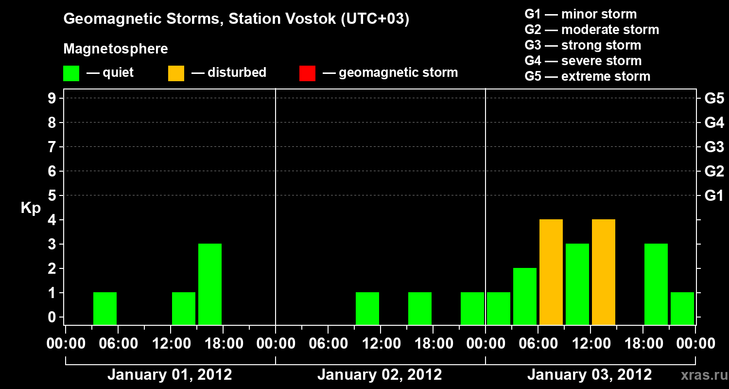 Geomagnetic storms in Station Vostok — Jan 03, 2012