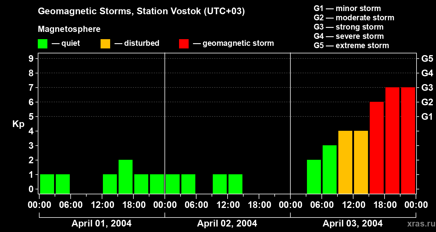 Geomagnetic storms in Station Vostok — Apr 03, 2004