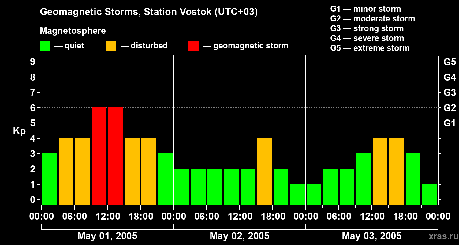 Geomagnetic storms in Station Vostok — May 03, 2005