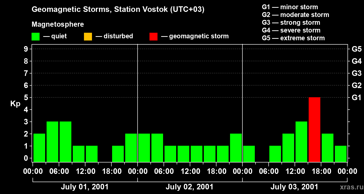 Geomagnetic storms in Station Vostok — Jul 03, 2001