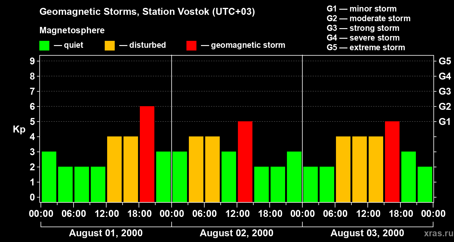 Geomagnetic storms in Station Vostok — Aug 03, 2000