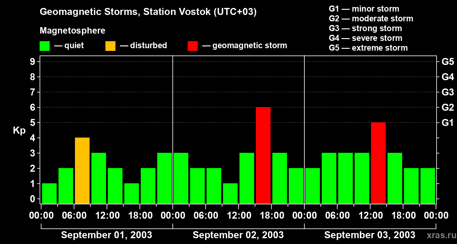 Geomagnetic storms in Station Vostok — Sep 03, 2003