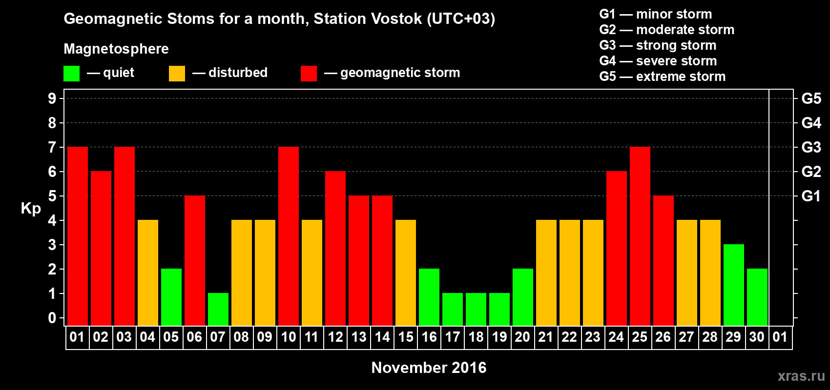 Geomagnetic storms in Station Vostok — Nov 30, 2016