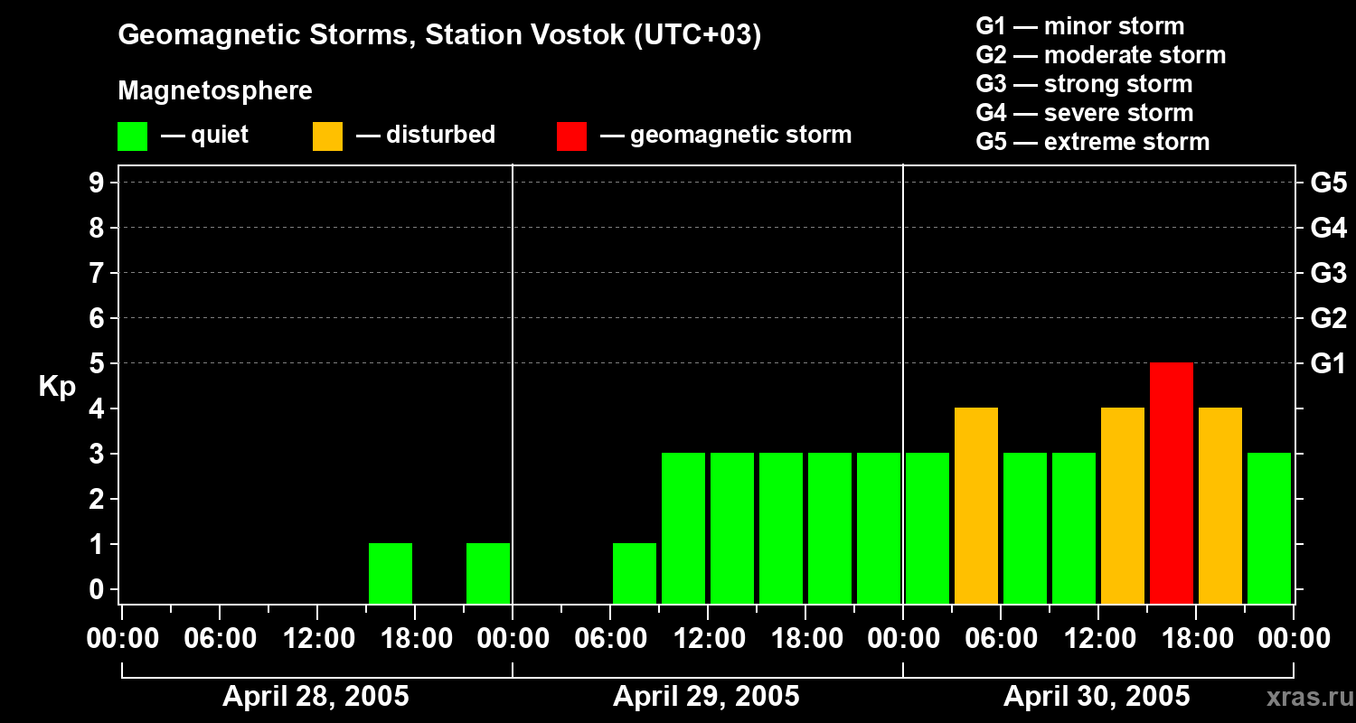 Geomagnetic storms in Station Vostok — Apr 30, 2005