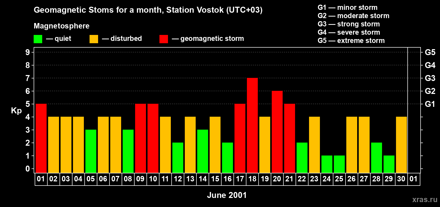 Geomagnetic storms in Station Vostok — Jun 30, 2001