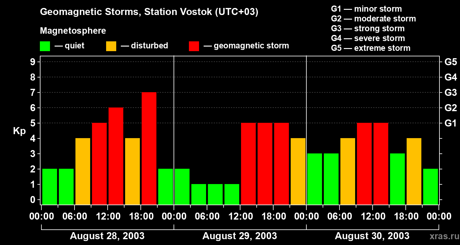 Geomagnetic storms in Station Vostok — Aug 30, 2003