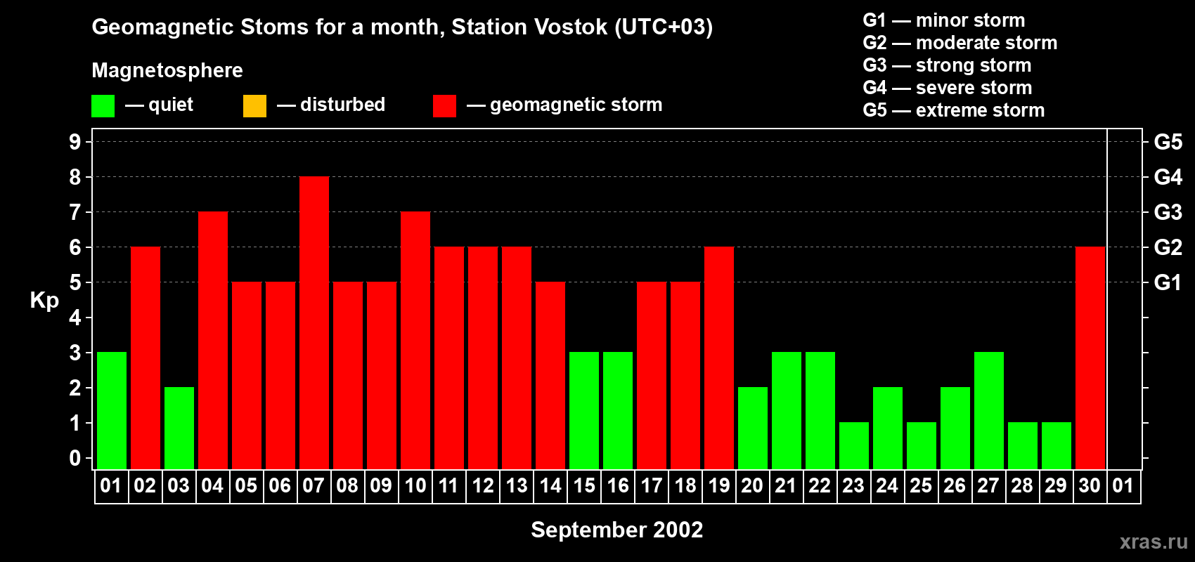 Geomagnetic storms in Station Vostok — Sep 30, 2002