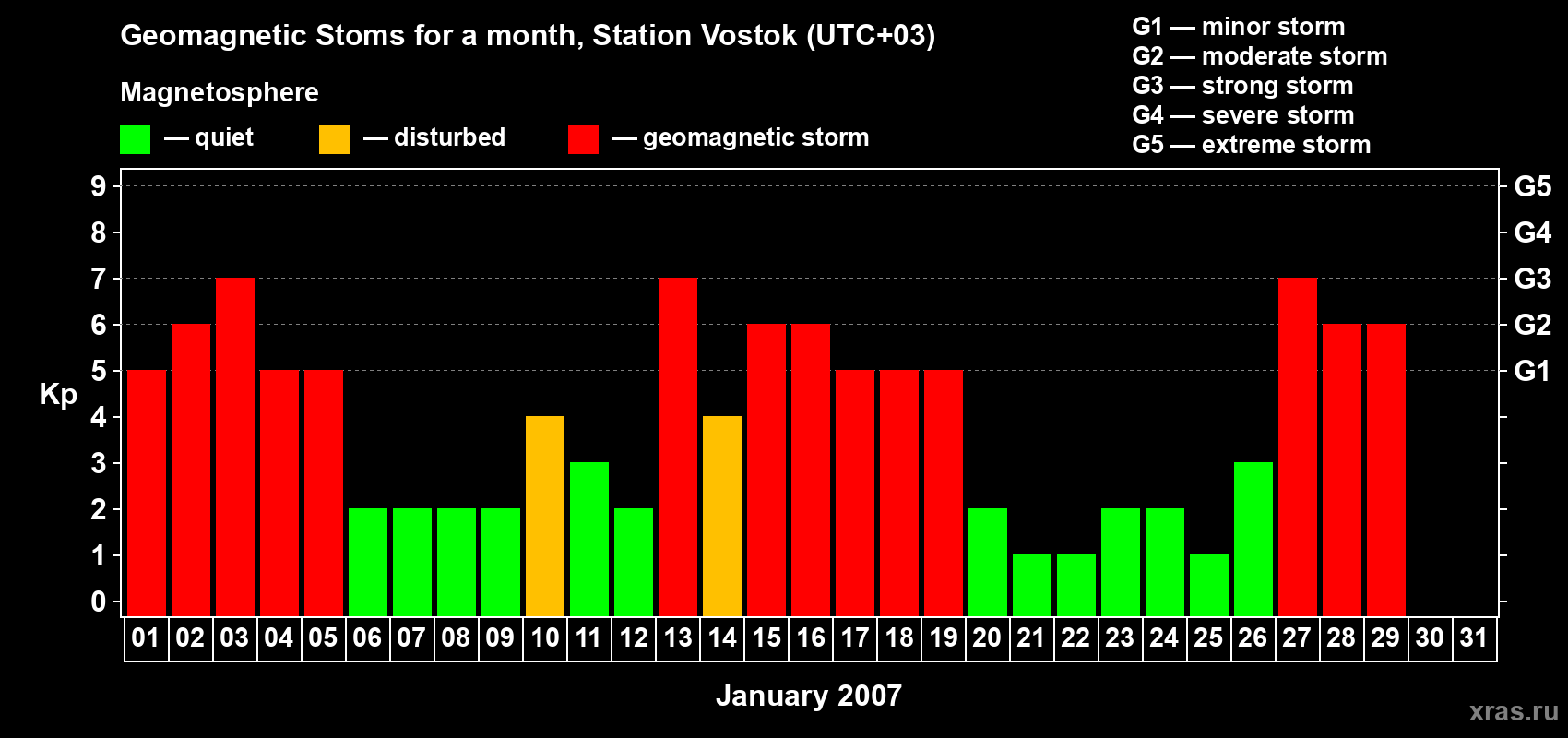 Geomagnetic storms in Station Vostok — Jan 31, 2007