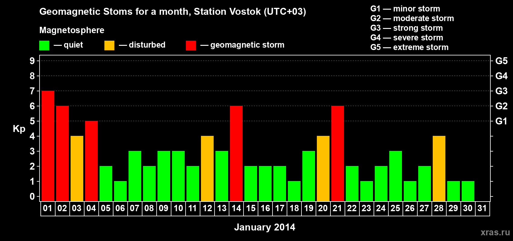 Geomagnetic storms in Station Vostok — Jan 31, 2014