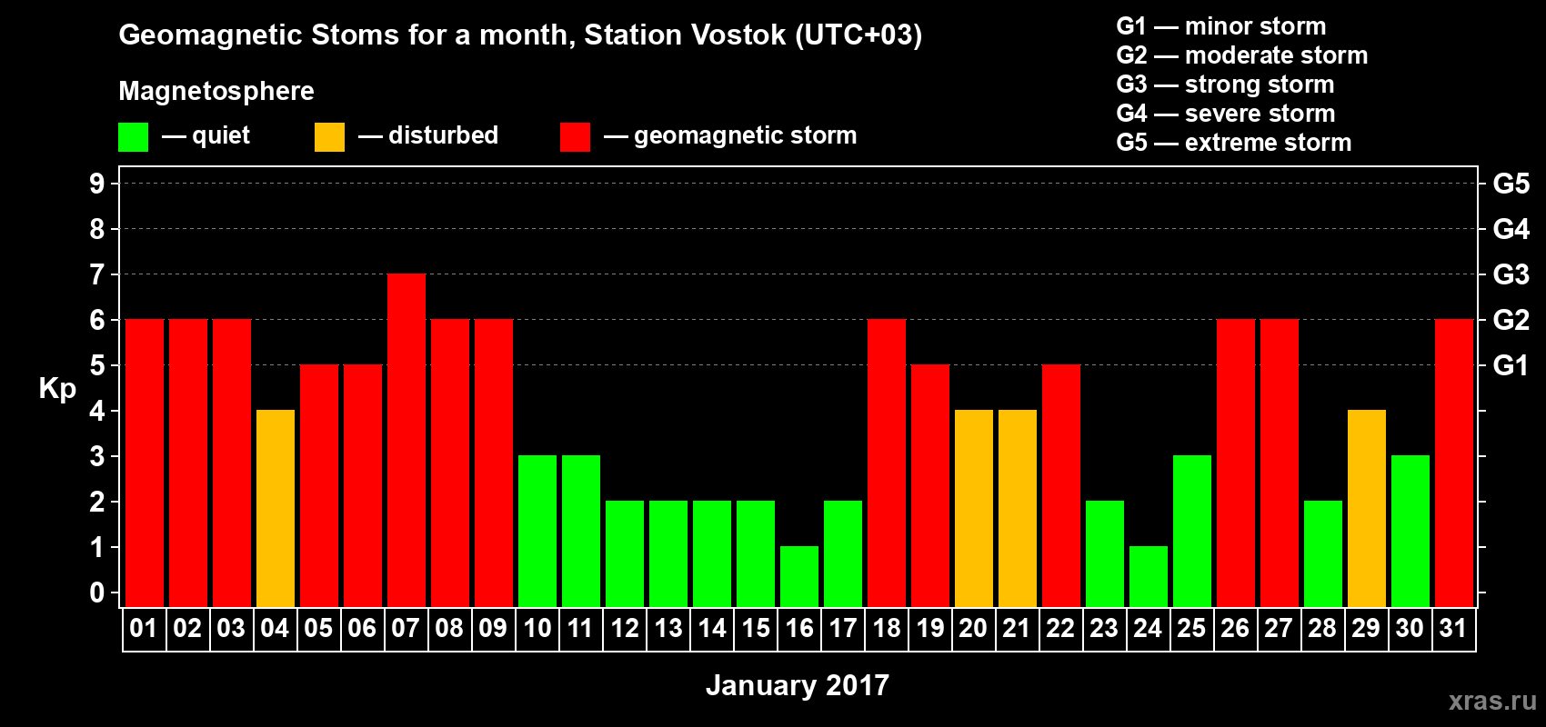 Geomagnetic storms in Station Vostok — Jan 31, 2017