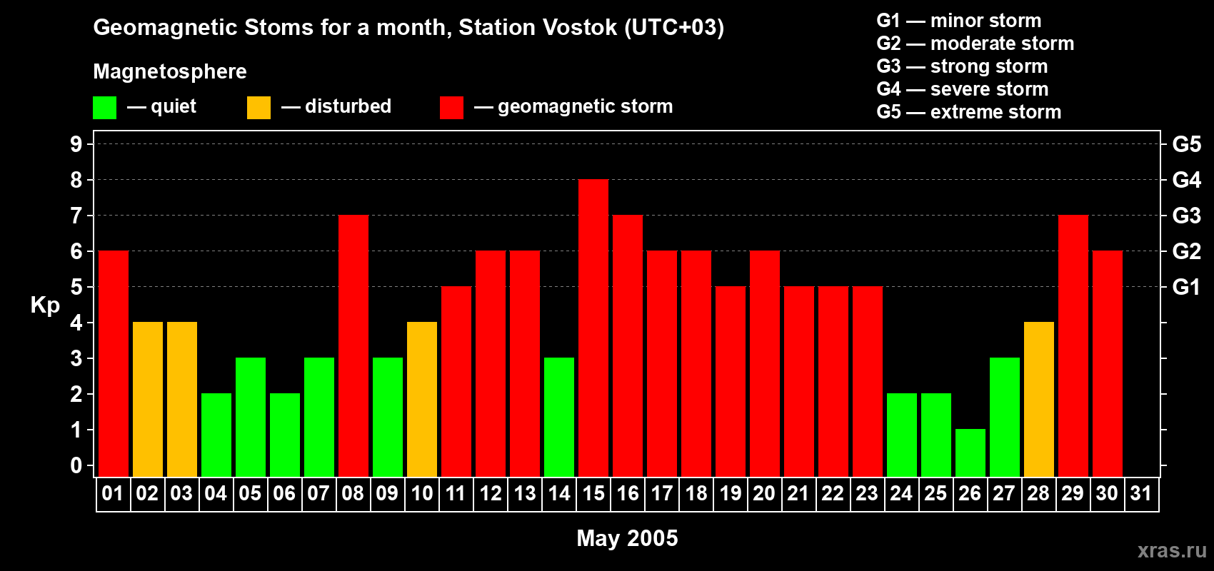 Geomagnetic storms in Station Vostok — May 31, 2005
