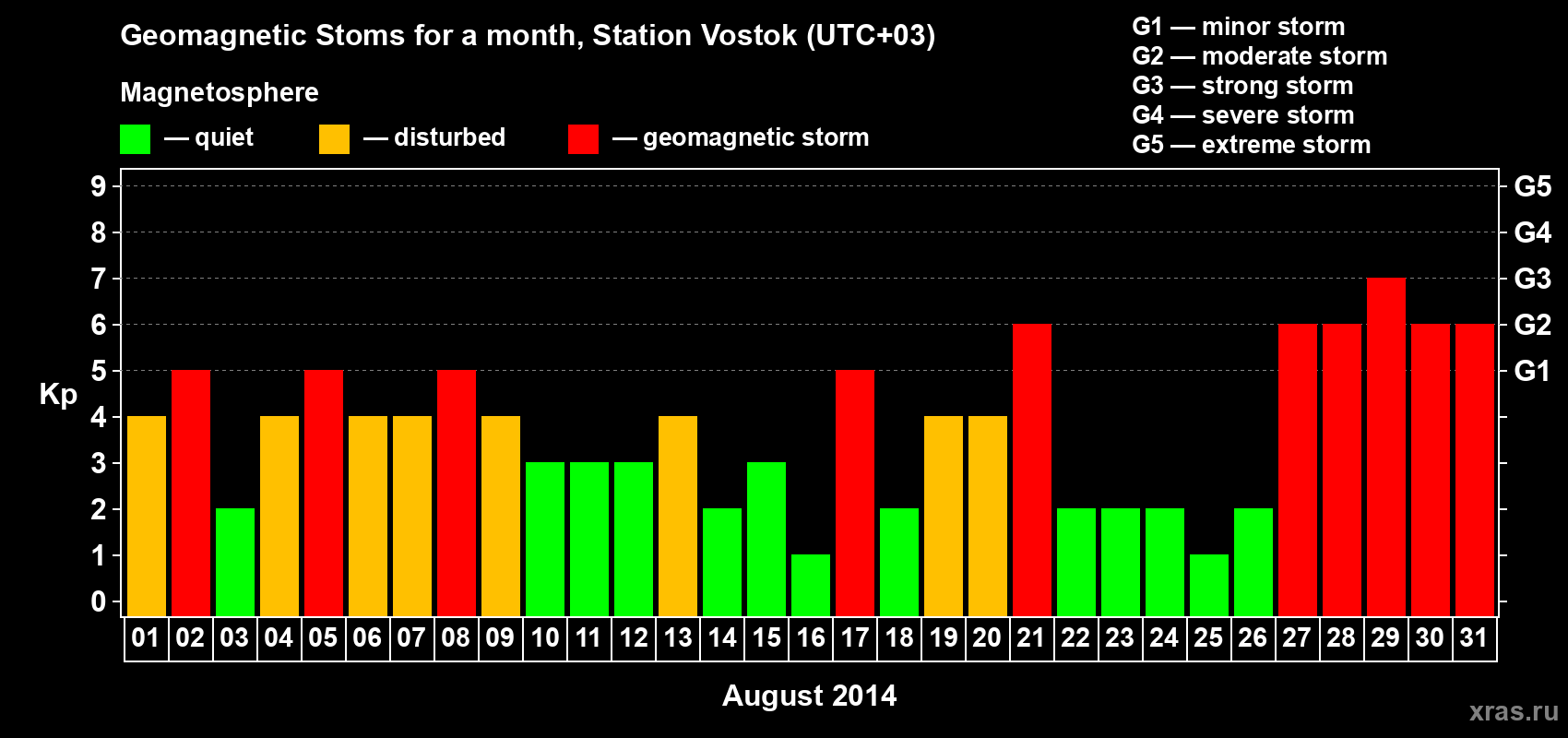 Geomagnetic storms in Station Vostok — Aug 31, 2014