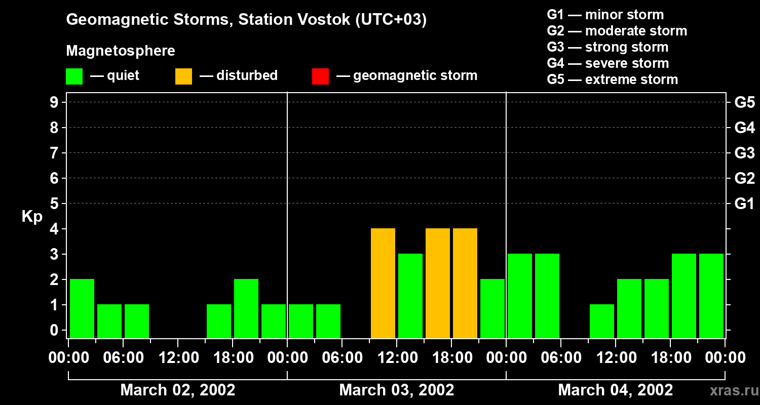 Geomagnetic storms in Station Vostok — Mar 04, 2002