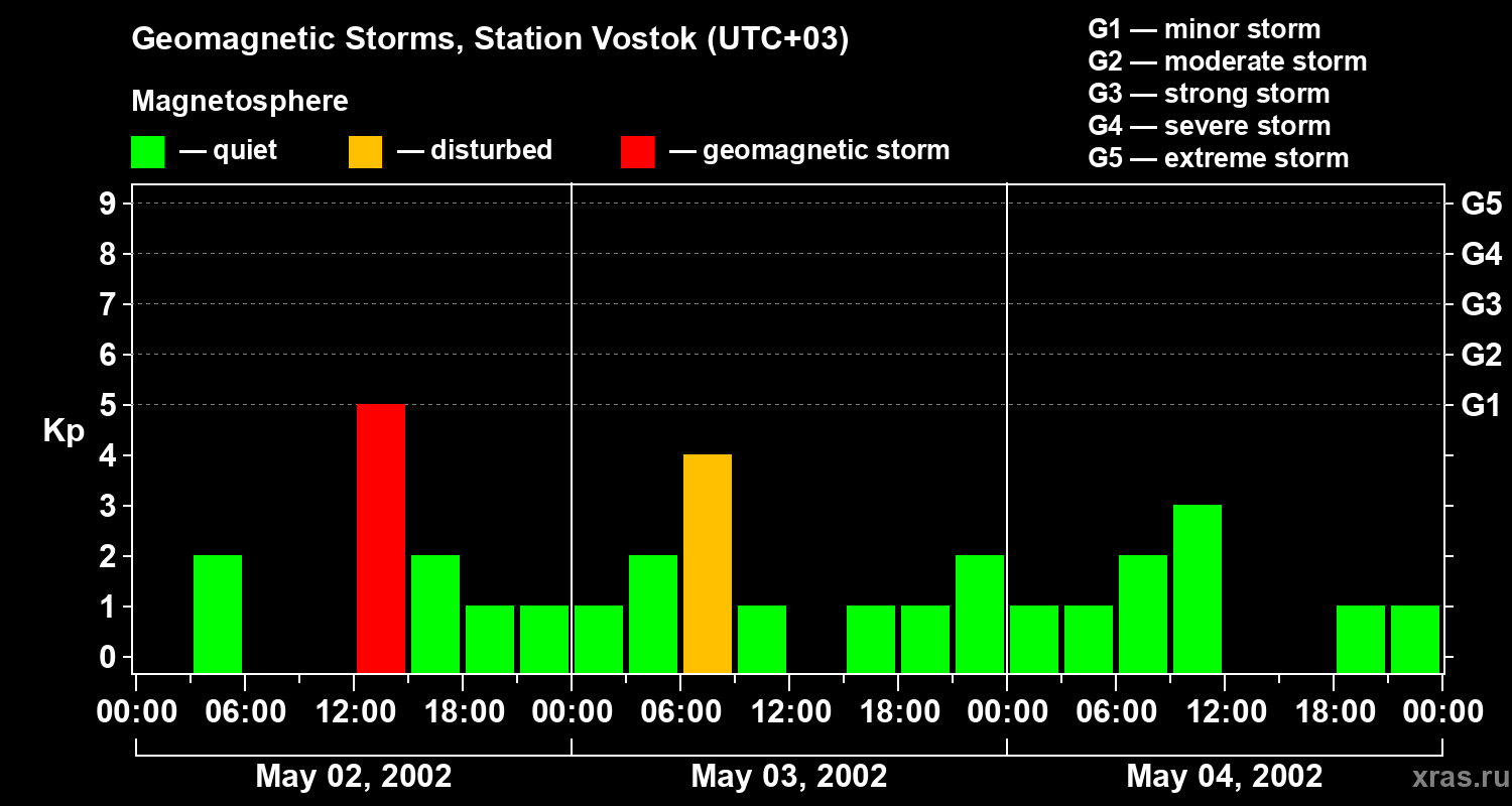 Geomagnetic storms in Station Vostok — May 04, 2002