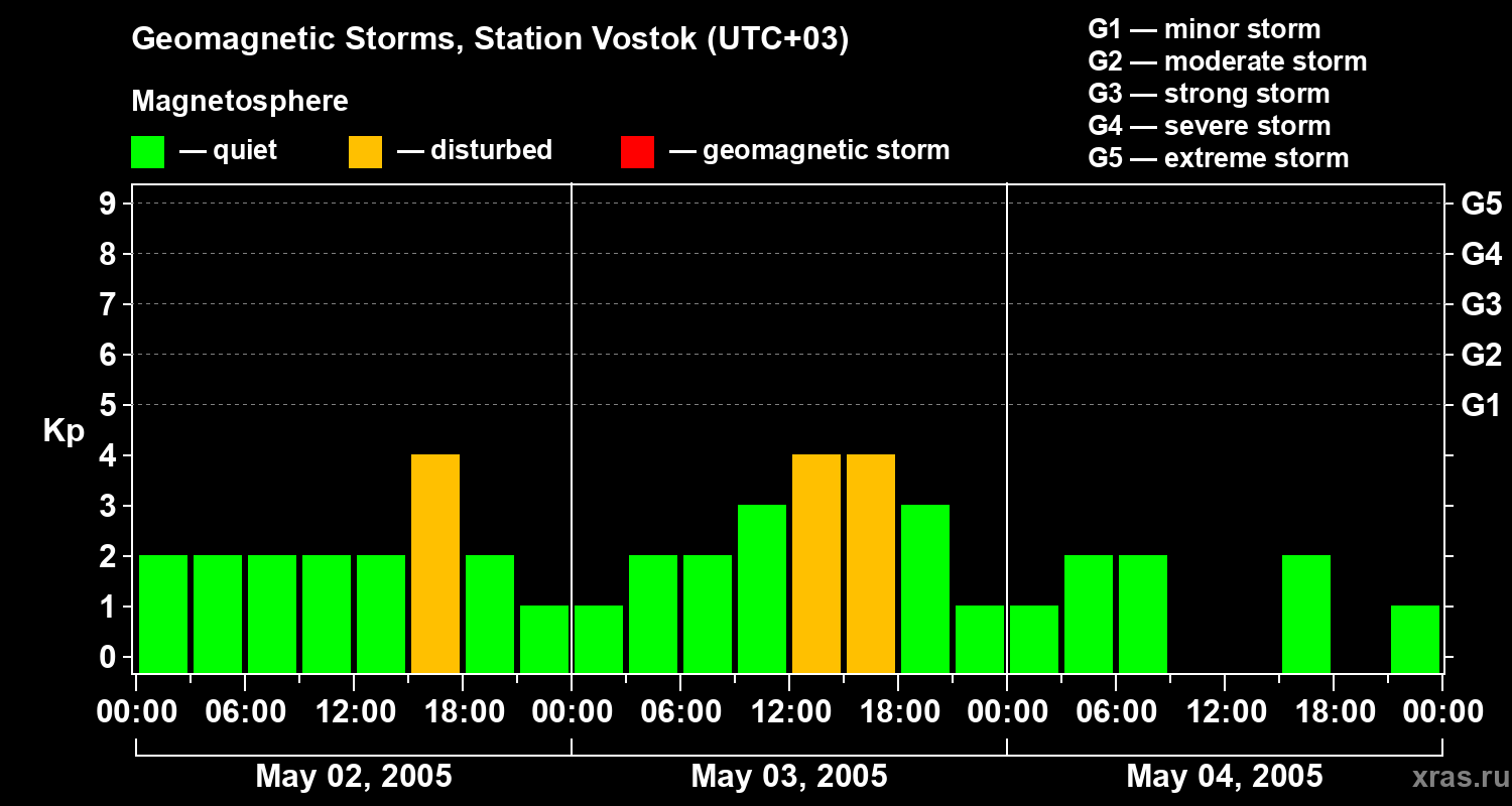 Geomagnetic storms in Station Vostok — May 04, 2005